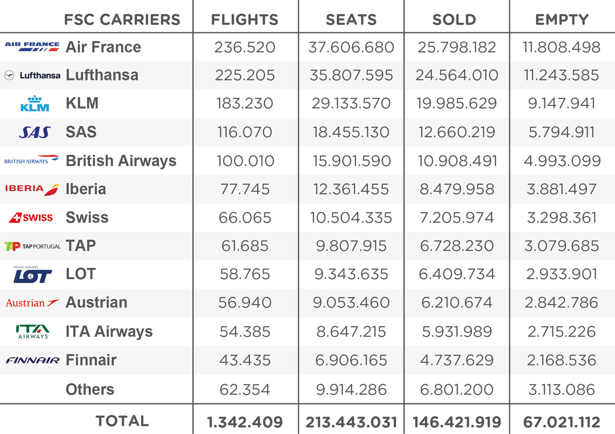 In 2021 by Full Service Carriers Airlines which flew with over 67Mio of empty seats, and we may supply demand for most of them.